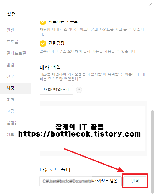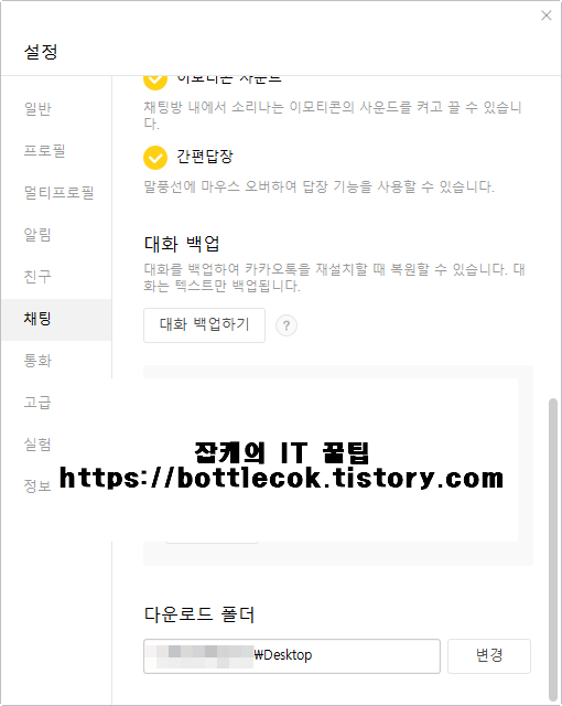 카카오톡 다운로드 폴더 변경, 위치, 경로 변경 하는 방법